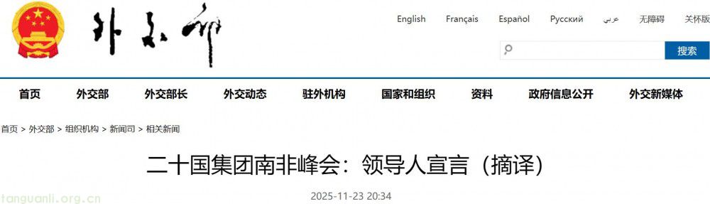 我们,2025年11月22日至23日相聚于南非约翰内斯堡的二十国集团领导人,出席南非主席国在非洲大陆举行的首次历史性峰会,应对主要全球挑战,探讨促进以团结、平等、可持续为关键支撑的包容性增长。