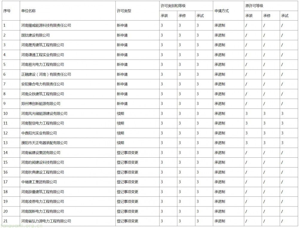根据《承装(修、试)电力设施许可证管理办法》《电力业务许可证管理规定》,按照国家能源局全面推行电力业务许可告知承诺制实施方案的要求,经审查(告知承诺制方式),准予以下企业行政许可:
