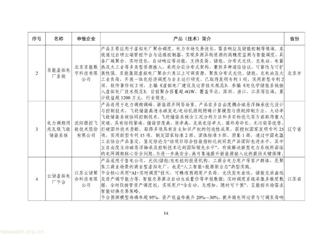 产品(技术)分为三大类别,聚焦电力优化核心需求。16 项负荷管理类产品亮点突出,北京京能数字科技的虚拟电厂系统、南京国电南自的智慧运营管控系统等,通过资源聚合与智能调度实现灵活调节;沈阳微控飞轮的兆瓦级飞轮储能系统、特来电的电动汽车充放电与绿电微电网整合技术,打通源网荷储协同路径。8 项综合能效类产品以国网冀北综合能源的智慧能源管控平台为代表,助力企业提升用能效率。6 项其他类产品包括思格新能源的光储充一体机,覆盖多元化用能场景。