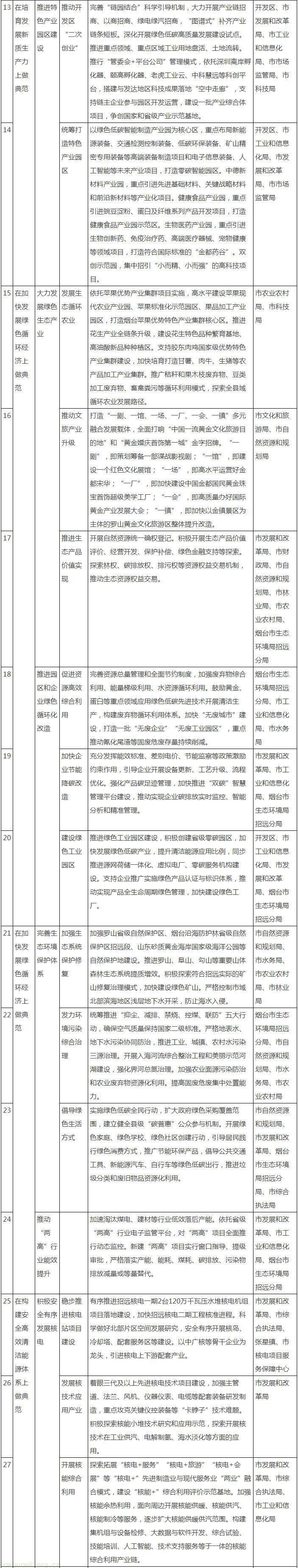 (牵头单位:市发展和改革局,责任单位:市工业和信息化局、市农业农村局、市投资促进中心、市科技局、市文化和旅游局、市自然资源和规划局、市林业局、烟台市生态环境局招远分局、开发区)