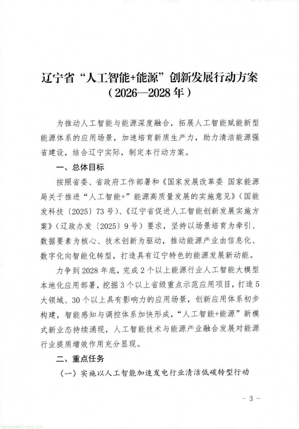 2025 年 12 月 26 日,辽宁省发展改革委印发《辽宁省 “人工智能 + 能源创新发展行动方案 (2026-2028 年)》,明确未来三年以人工智能赋能能源产业转型的核心路径。