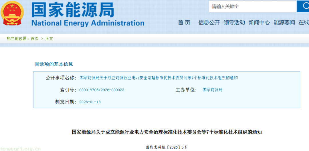 国家能源局关于成立能源行业电力安全治理标准化技术委员会等7个标准化技术组织的通知