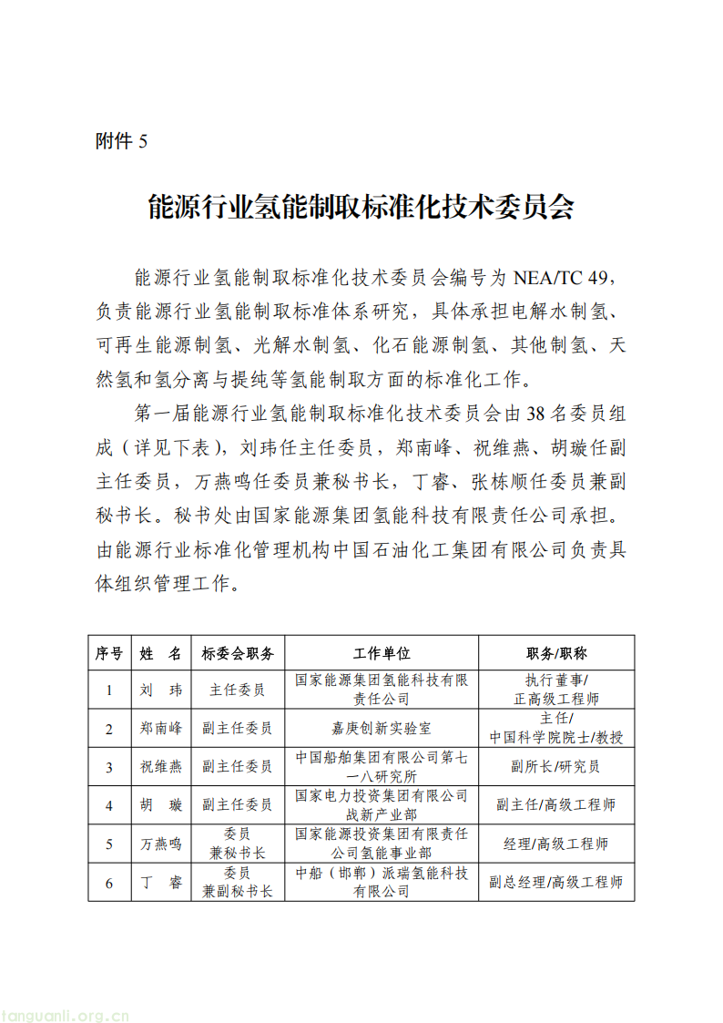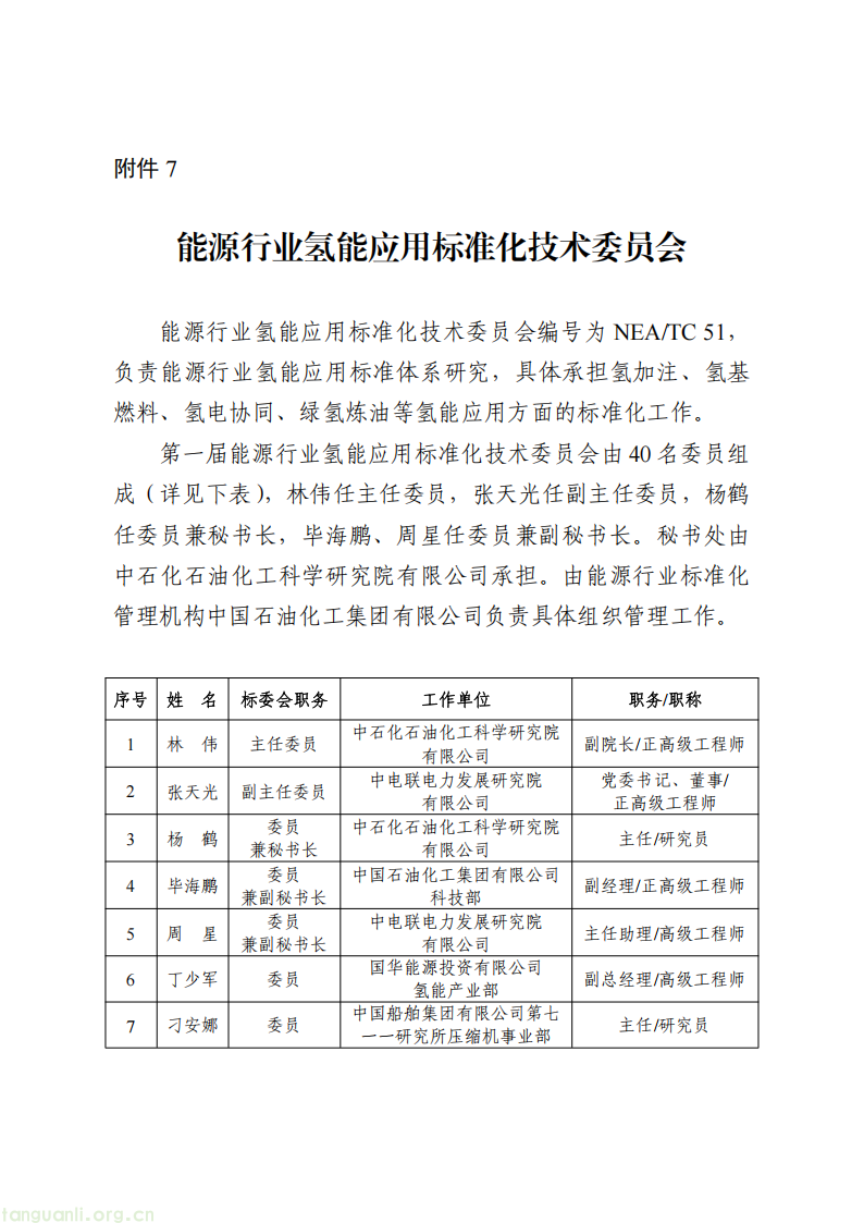 一、同意成立能源行业电力安全治理标准化技术委员会、能源行业电力温室气体排放管理标准化技术委员会、能源行业二氧化碳捕集运输利用与封存标准化技术委员会、能源行业氢能基础与通用标准化技术委员会、能源行业氢能制取标准化技术委员会、能源行业氢能储存与运输标准化技术委员会、能源行业氢能应用标准化技术委员会,其编号、职责范围、秘书处承担单位、委员名单等详见附件。