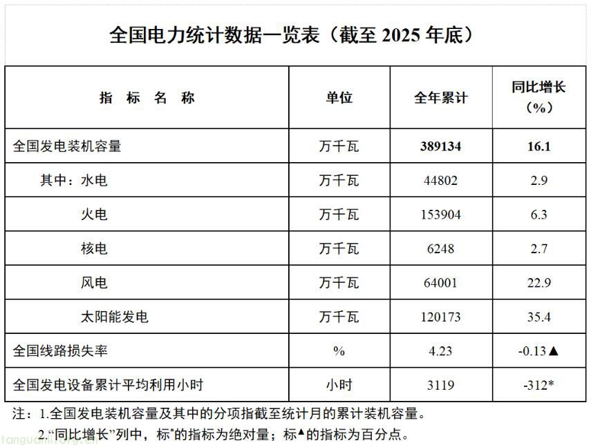 1月28日,国家能源局发布2025年全国电力统计数据。