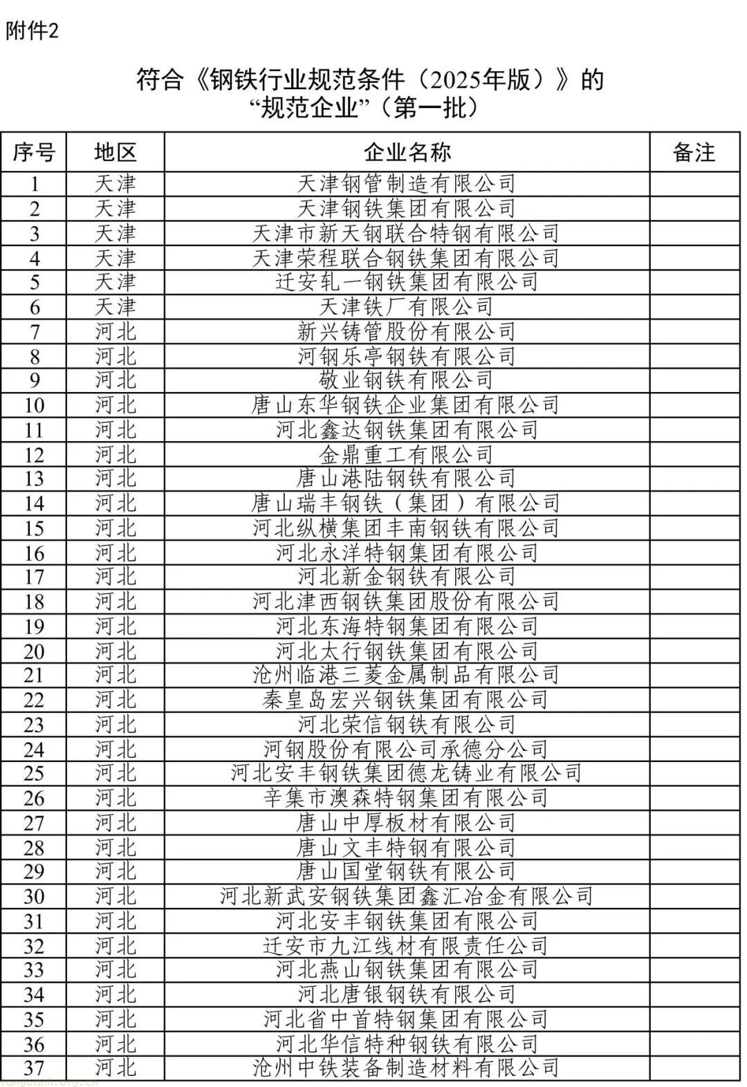 2.符合《钢铁行业规范条件(2025年版)》的“规范企业”(第一批)
