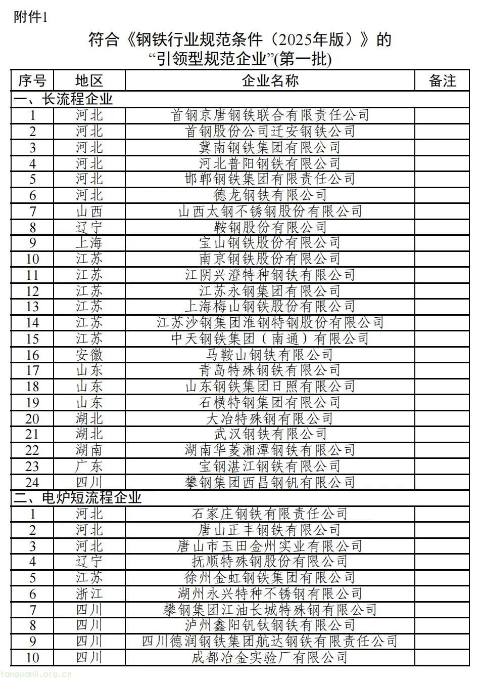 1.符合《钢铁行业规范条件(2025年版)》的“引领型规范企业”(第一批)