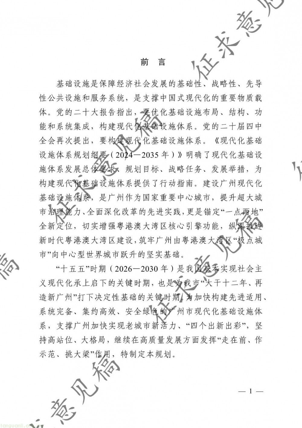 广州市发展改革委关于公开征求《广州市现代化基础设施发展“十五五”规划(征求意见稿)》意见的公告