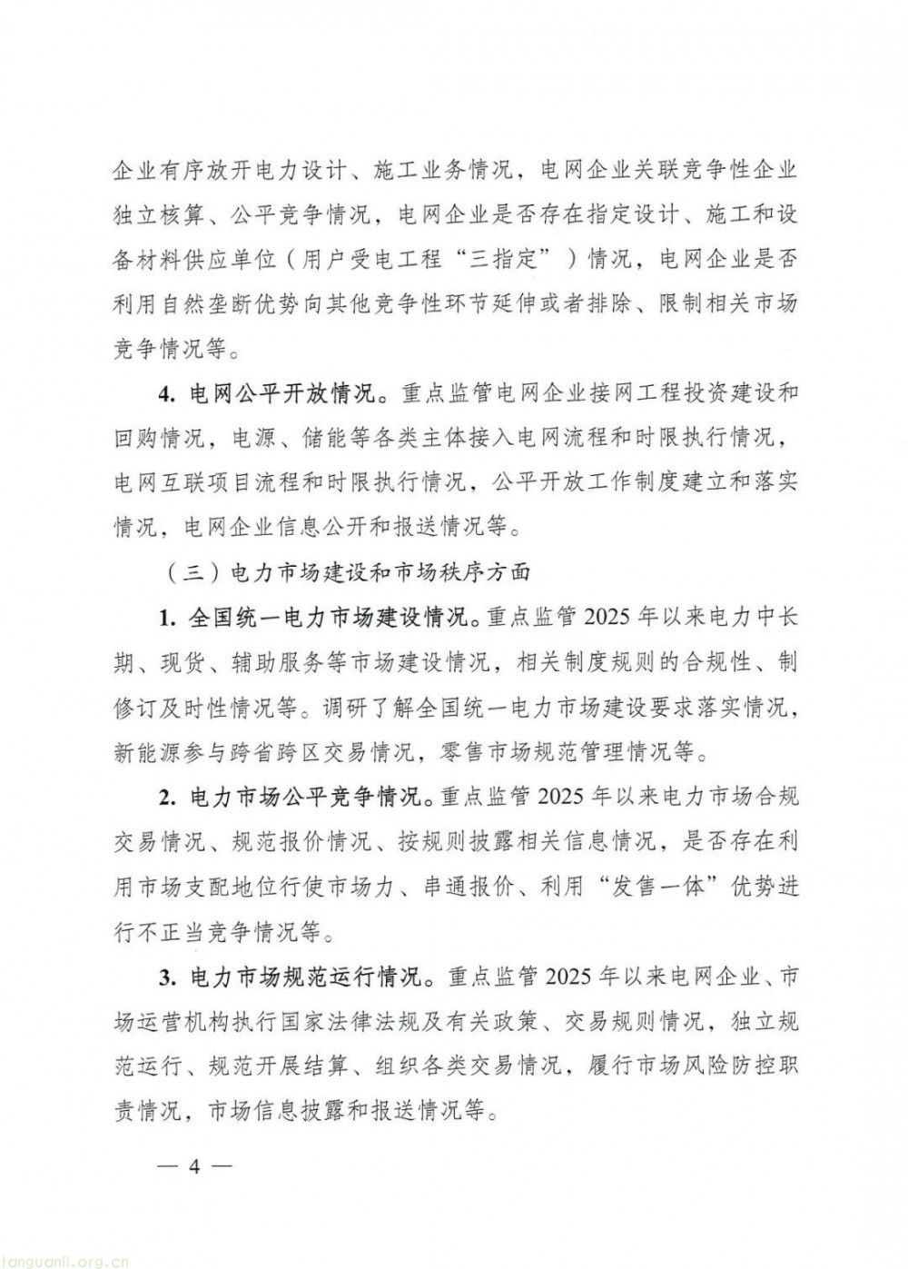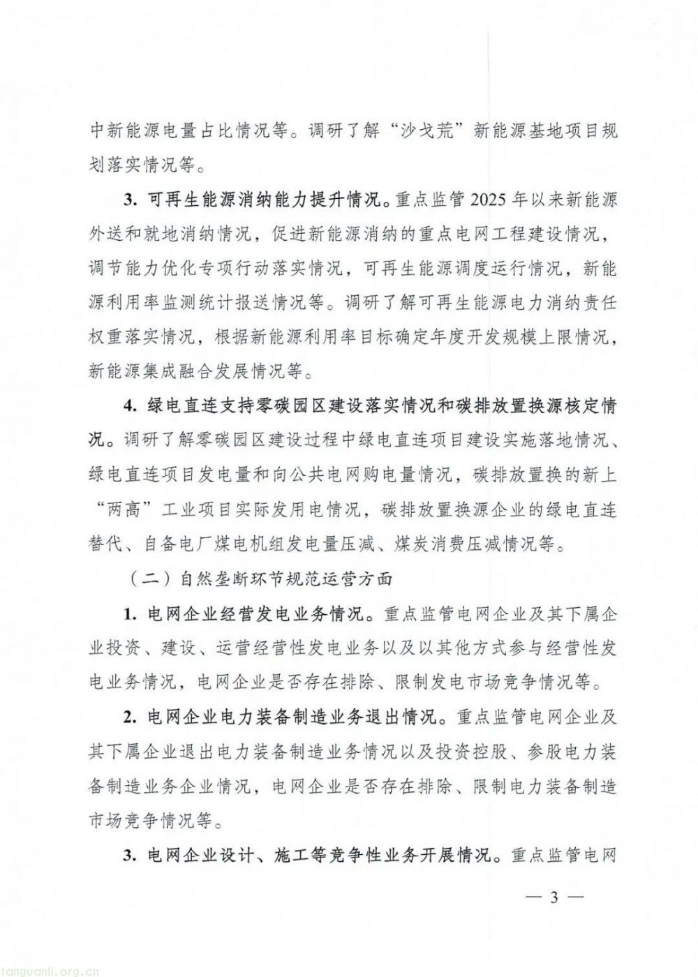 本次监管重点围绕节能降碳任务落实、自然垄断环节规范运营、电力市场建设与秩序、电力基础设施运营及用电营商环境四大方面展开。在节能降碳监管上,将重点核查煤电 “三改联动” 及升级改造、输配电降损成效;紧盯 “沙戈荒” 新能源基地建设、送出工程与消纳情况;强化可再生能源消纳、调度运行及利用率管理;同时调研绿电直连助力零碳园区建设、碳排放置换源核定等落实情况。通过全面监管,及时纠治违规行为,保障电力行业绿色转型与规范发展。
