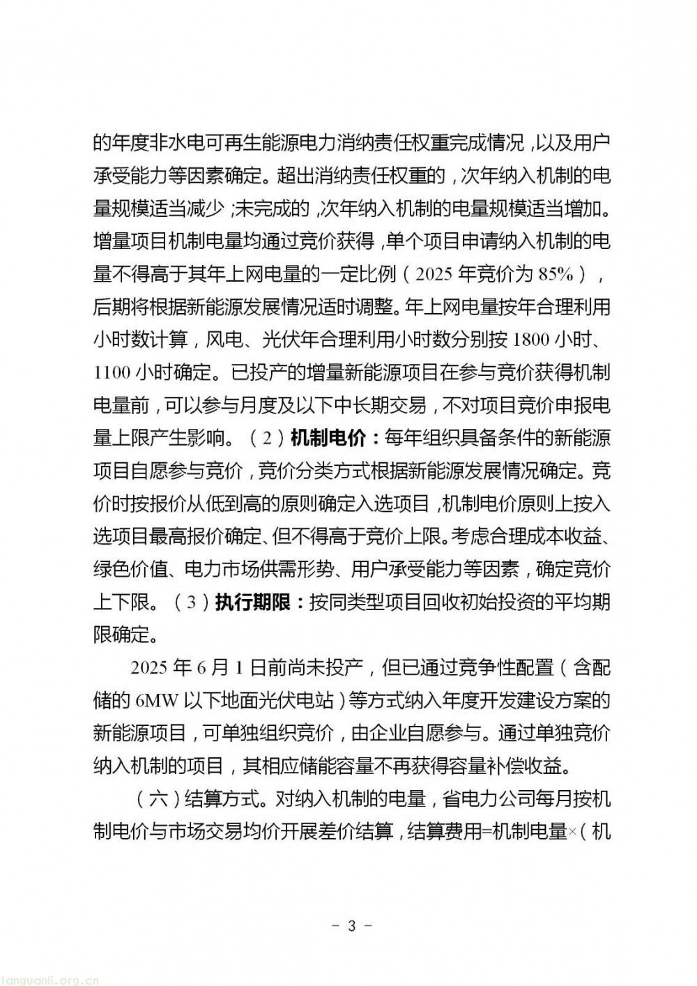 方案对存量和增量项目区别对待。存量项目指 2025 年 6 月 1 日以前投产的项目,其电量规模按项目实际上网电量乘以年机制电量比例确定,机制电价按我省燃煤发电基准价(0.3844 元 / 千瓦时)执行,部分已有明确上网电价(不含补贴)的项目则依此定价,执行期限按自投产之日起满 20 年与剩余全生命周期合理利用小时数(风电 36000 小时、光伏 22000 小时)较早者确定。增量项目即 2025 年 6 月 1 日起投产的项目,每年新增纳入机制的电量规模,需综合国家下达的年度非水电可再生能源电力消纳责任权重完成情况以及用户承受能力等因素确定。增量项目机制电量均通过竞价获得,单个项目申请纳入机制的电量不得高于其年上网电量的一定比例(2025 年竞价为 85%),后续将根据新能源发展情况调整。机制电价每年组织符合条件的项目自愿参与竞价确定,按报价从低到高原则确定入选项目,机制电价原则上按入选项目最高报价确定,但不得高于竞价上限。此外,针对 2025 年 6 月 1 日前尚未投产,但已通过竞争性配置等方式纳入年度开发建设方案的新能源项目,可单独组织竞价,企业自愿参与,通过单独竞价纳入机制的项目,其相应储能容量不再获得容量补偿收益。