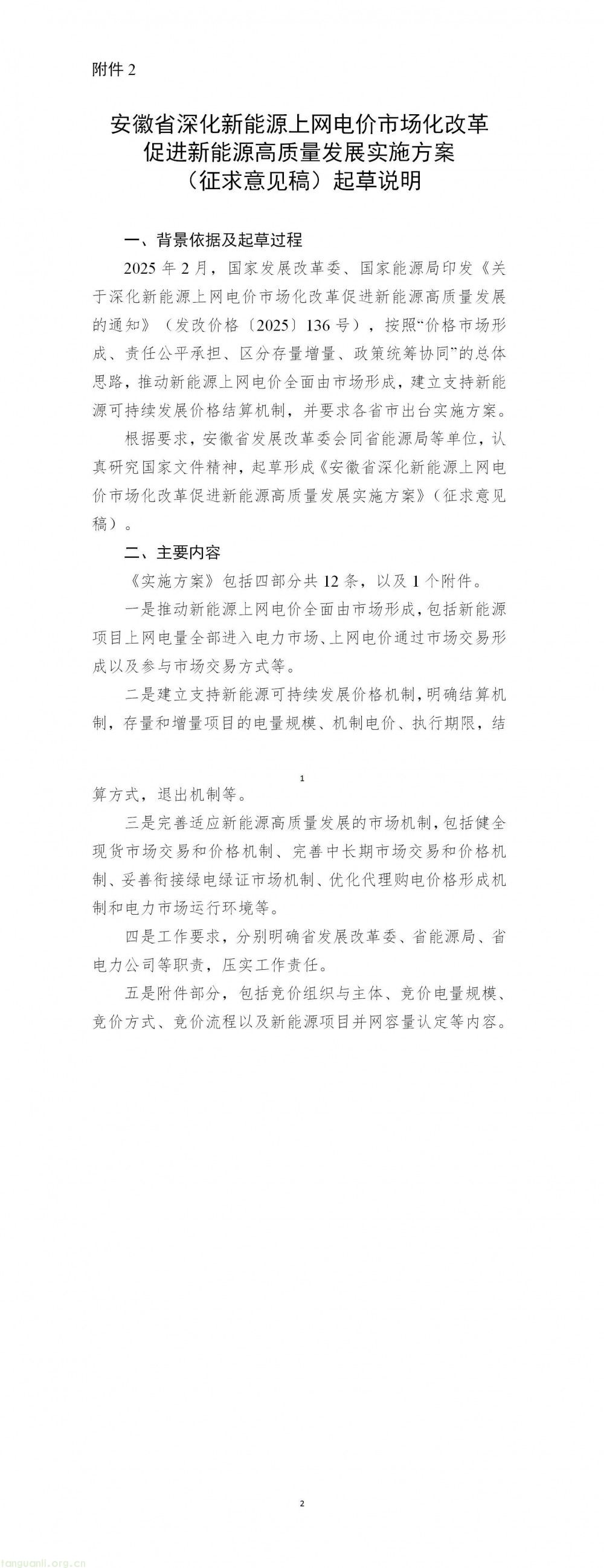 2.安徽省深化新能源上网电价市场化改革促进新能源高质量发展实施方案(征求意见稿)起草说明