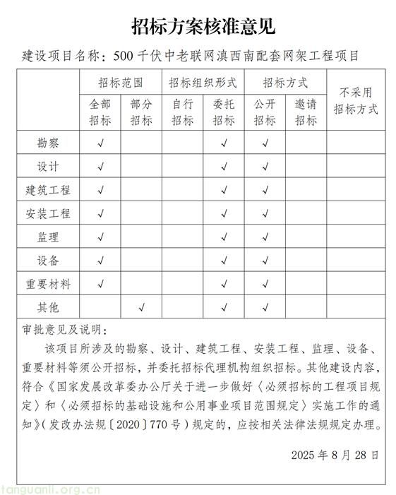 报来《普洱市发展和改革委员会关于核准500千伏中老联网滇西南配套网架工程项目的请示》(普发改电力〔2025〕316号)、《西双版纳州发展和改革委员会关于转报500千伏中老联网滇西南配套网架工程项目核准的请示》(西发改电气〔2025〕174号)、《云南电网有限责任公司关于500千伏中老联网滇西南配套网架工程项目核准的请示》(云电规划〔2025〕406号)及有关材料收悉。根据企业投资项目核准管理及有关法律法规的规定,经研究,现就500千伏中老联网滇西南配套网架工程项目(项目代码:2506—530000—04—01—384681)核准事项批复如下: