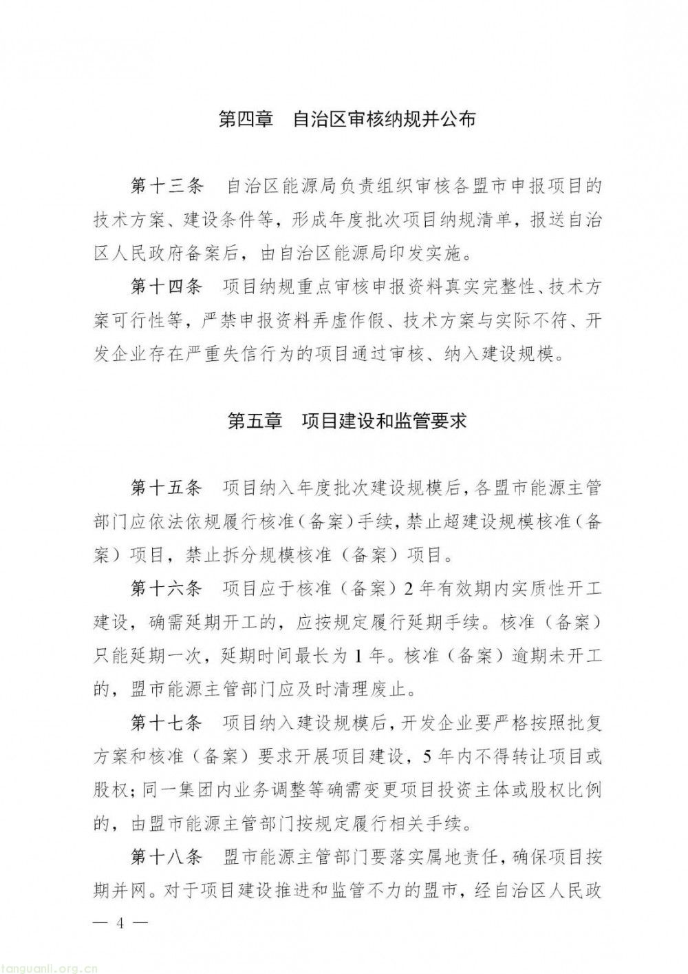 第十五条 项目纳入年度批次建设规模后,各盟市能源主管部门应依法依规履行核准(备案)手续,禁止超建设规模核准(备案)项目,禁止拆分规模核准(备案)项目。