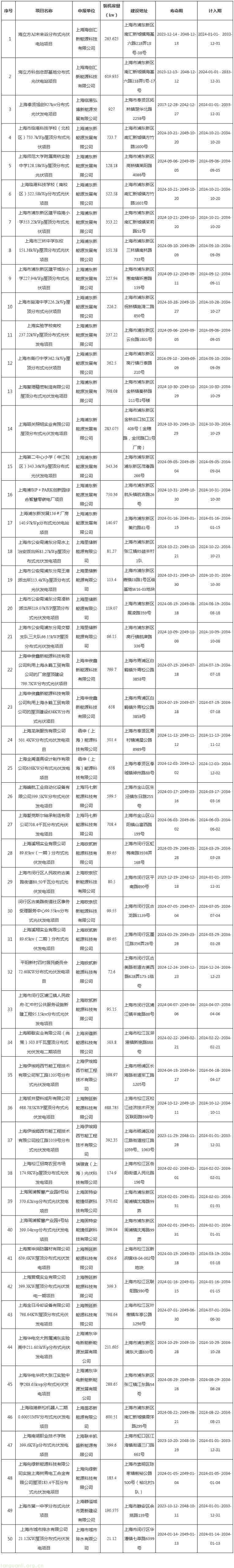 附件:上海碳普惠分布式光伏发电第十三批减排项目清单