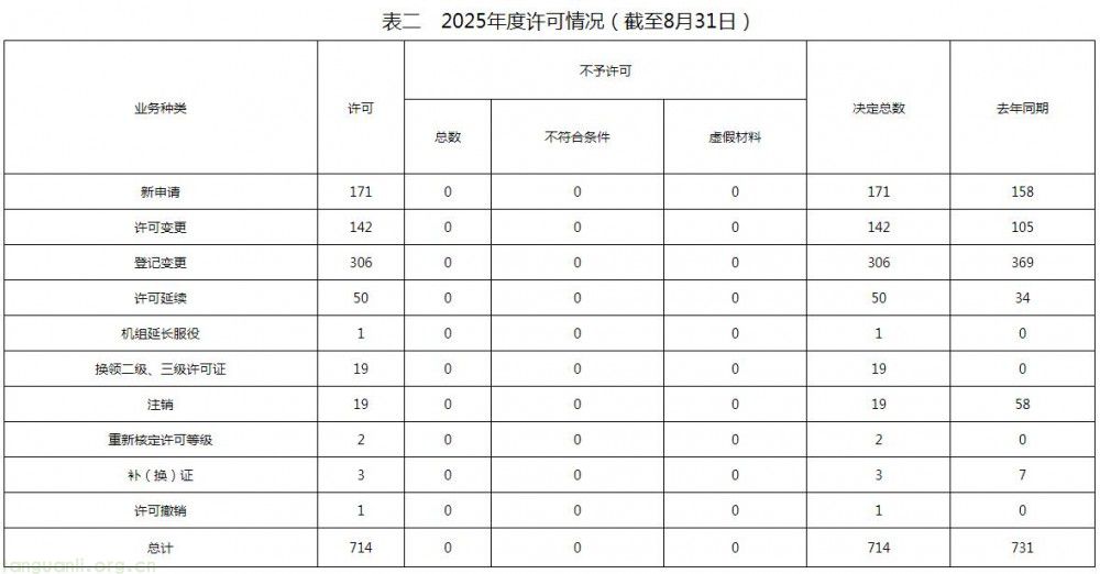 截至8月31日,共办理电力业务、承装(修、试)电力设施业务714件,较去年同期减少2.3%,其中新申请171件,较去年同期增加8.2%;许可变更142件,较去年同期增加35.2%。