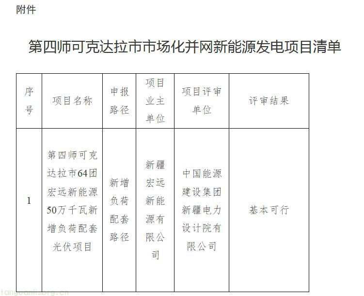 附件:第四师可克达拉市市场化并网新能源发电项目清单