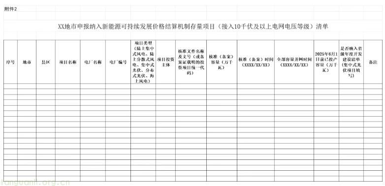 附件2.XX地市申报纳入新能源可持续发展价格结算机制存量项目清单.xls