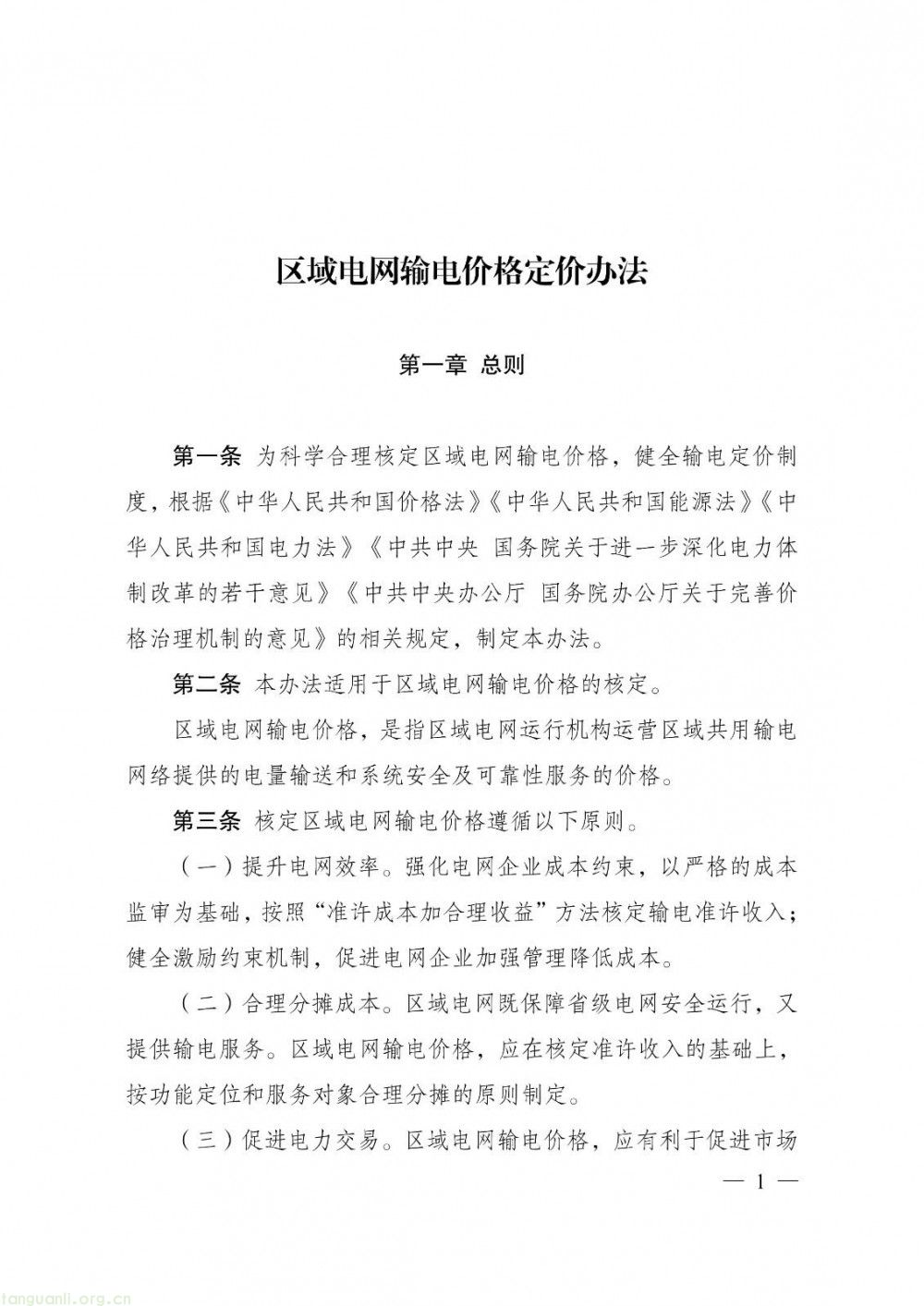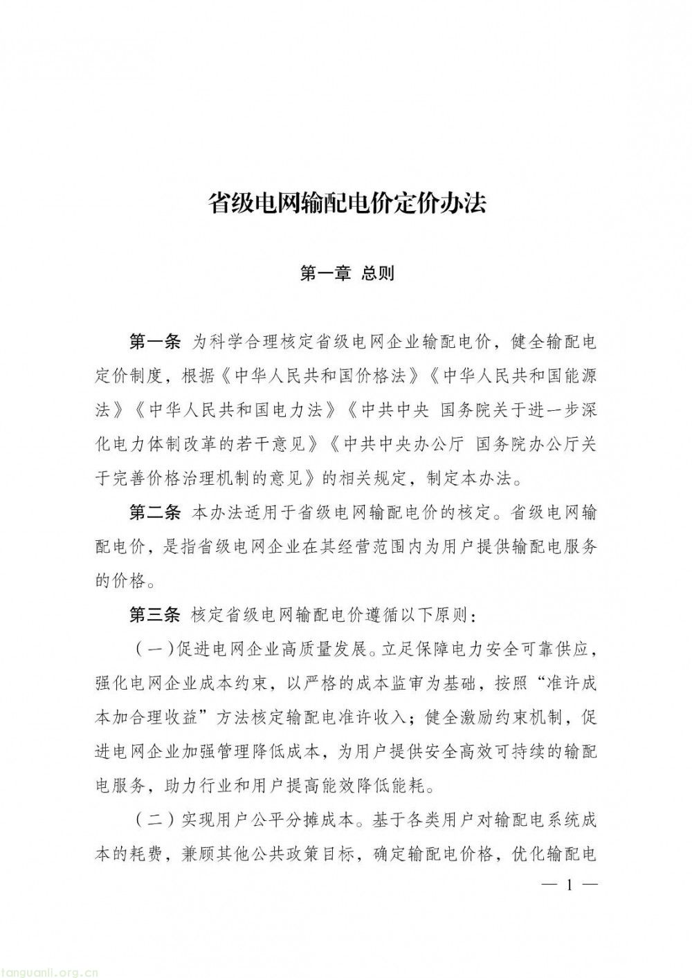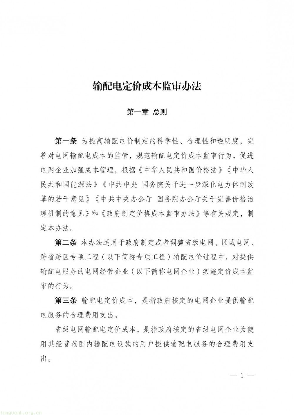 为贯彻落实中共中央办公厅、国务院办公厅《关于完善价格治理机制的意见》要求,进一步完善电网企业输配电环节价格监管制度,经商国家能源局,我们研究制定了《输配电定价成本监审办法》《省级电网输配电价定价办法》《区域电网输电价格定价办法》和《跨省跨区专项工程输电价格定价办法》。现印发给你们,请按照执行。