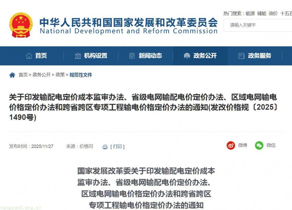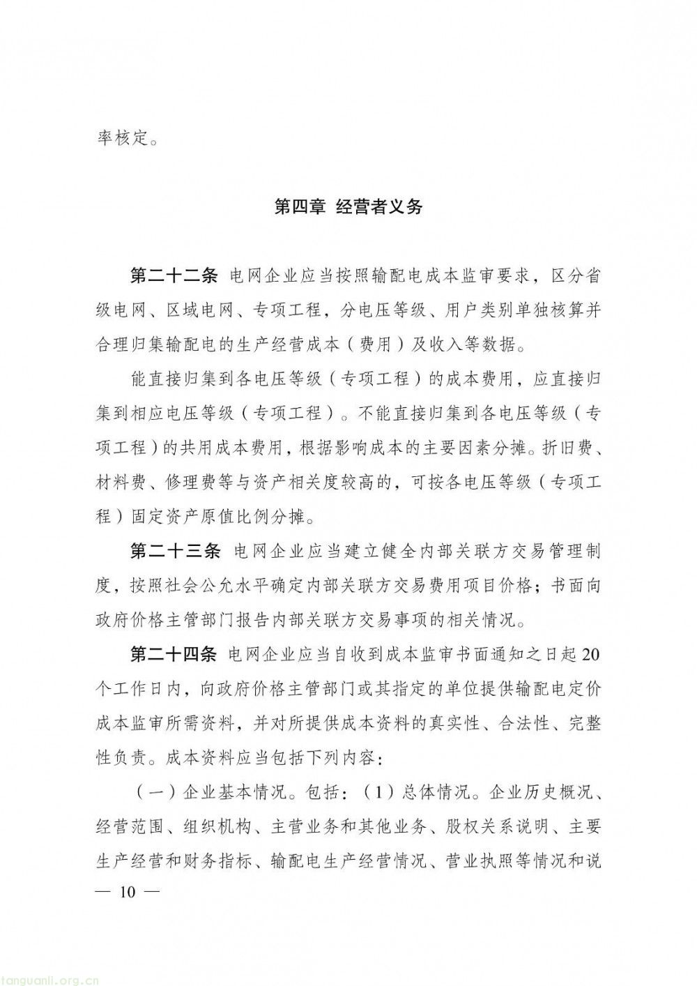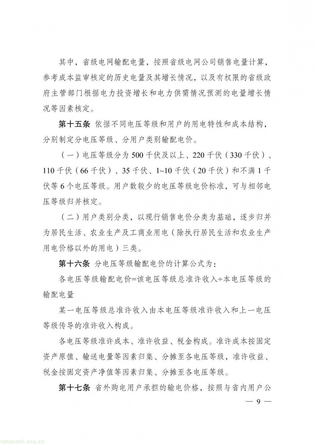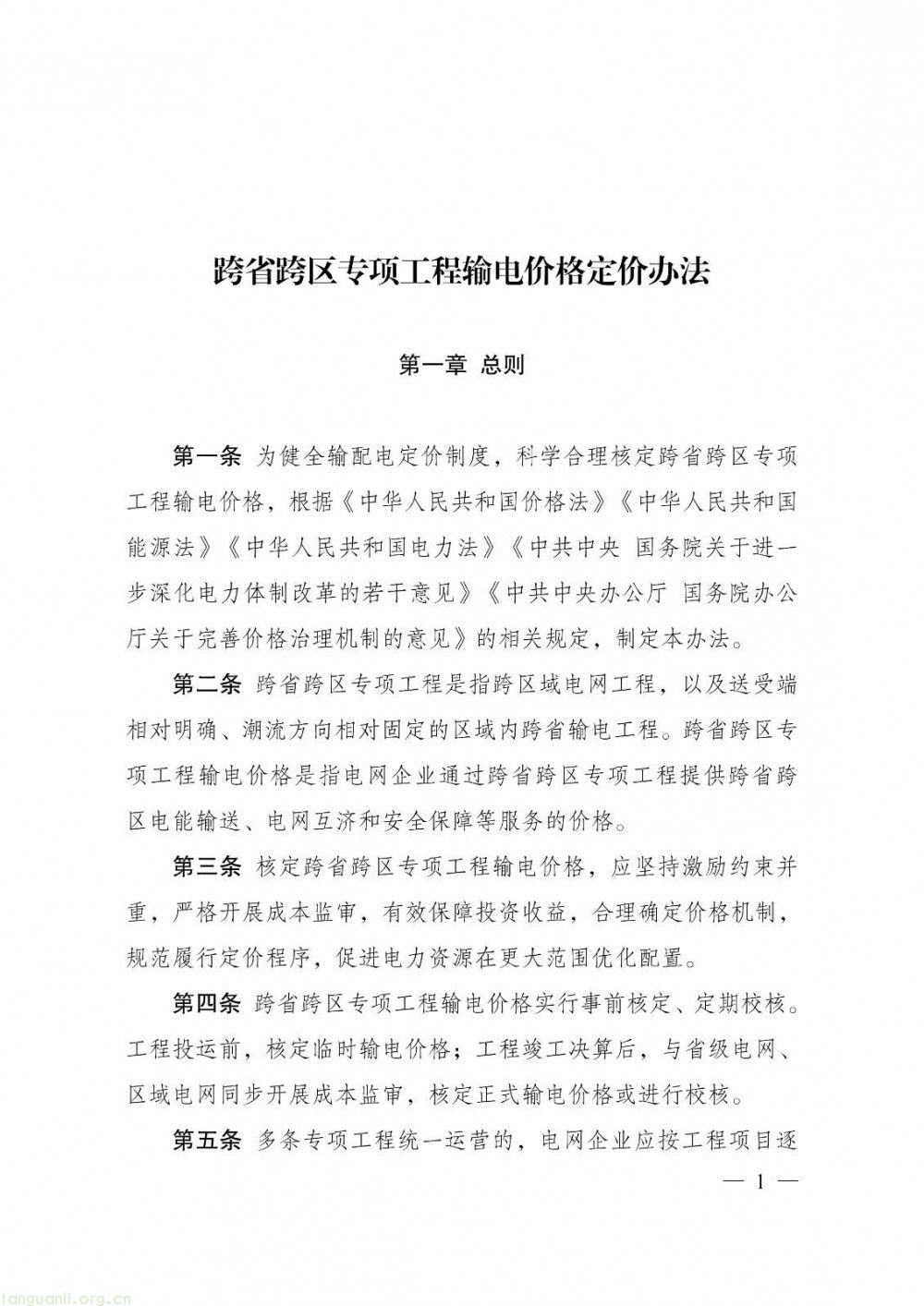 为贯彻落实中共中央办公厅、国务院办公厅《关于完善价格治理机制的意见》要求,进一步完善电网企业输配电环节价格监管制度,经商国家能源局,我们研究制定了《输配电定价成本监审办法》《省级电网输配电价定价办法》《区域电网输电价格定价办法》和《跨省跨区专项工程输电价格定价办法》。现印发给你们,请按照执行。