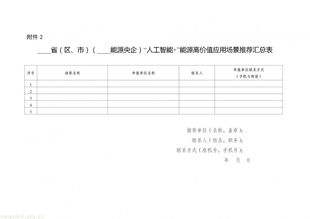 4.请各省级能源主管部门、中央企业于2025年12月29日前将高价值应用场景申报书(详见附件1)、推荐汇总表(详见附件2)盖章件一式三份纸质版及电子版(光盘刻录)寄送至国家能源局科技司。申报场景命名规则为“推荐地区/单位名称-序号-场景名称”(序号与推荐汇总表一致)。