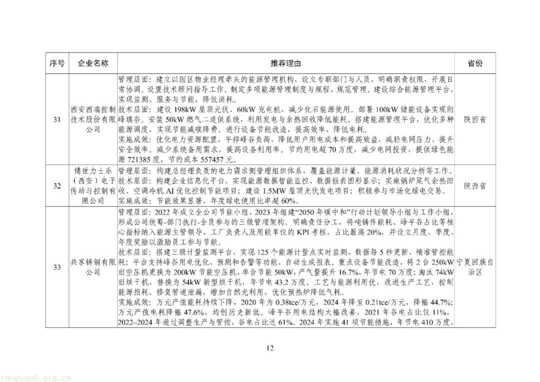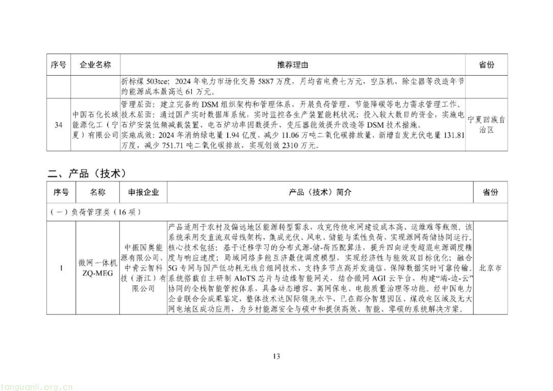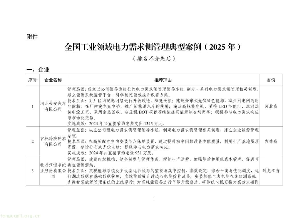 为贯彻落实国家能源生产和消费革命战略,做好工业领域电力需求侧管理工作,经地方行业主管部门初审、专家复审、复核公示等程序,确定34家企业和30项产品(技术)列入《全国工业领域电力需求侧管理典型案例(2025年)》,现予以公布(名单见附件)。