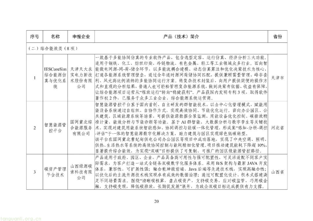 产品(技术)分为三大类别,聚焦电力优化核心需求。16 项负荷管理类产品亮点突出,北京京能数字科技的虚拟电厂系统、南京国电南自的智慧运营管控系统等,通过资源聚合与智能调度实现灵活调节;沈阳微控飞轮的兆瓦级飞轮储能系统、特来电的电动汽车充放电与绿电微电网整合技术,打通源网荷储协同路径。8 项综合能效类产品以国网冀北综合能源的智慧能源管控平台为代表,助力企业提升用能效率。6 项其他类产品包括思格新能源的光储充一体机,覆盖多元化用能场景。