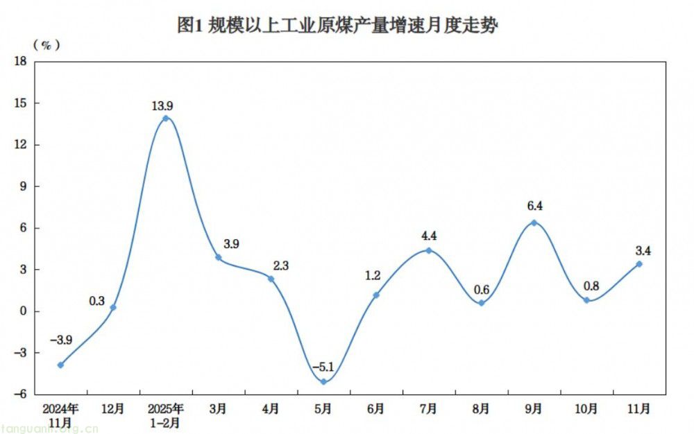 原煤生产同比增长,与上月相比增速加快。11月份,全省规模以上工业原煤产量878.05万吨,同比增长3.4%,增速比10月份提高2.6个百分点,日均产量29.27万吨。