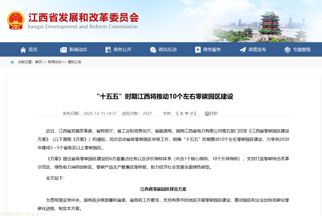 零碳园区建设是“双碳”领域重要的“增量政策”和有力支撑。自2024年以来,国家多次在中央经济工作会议、政府工作报告、“十五五”规划建议中强调“零碳园区”建设工作,力争在“十五五”时期建成100个左右国家级零碳园区。2025年6月30日,国家发改委、工业和信息化部、国家能源局印发《关于开展零碳园区建设的通知》,启动国家级零碳园区建设,提出“各地区可结合实际开展省级零碳园区建设”。