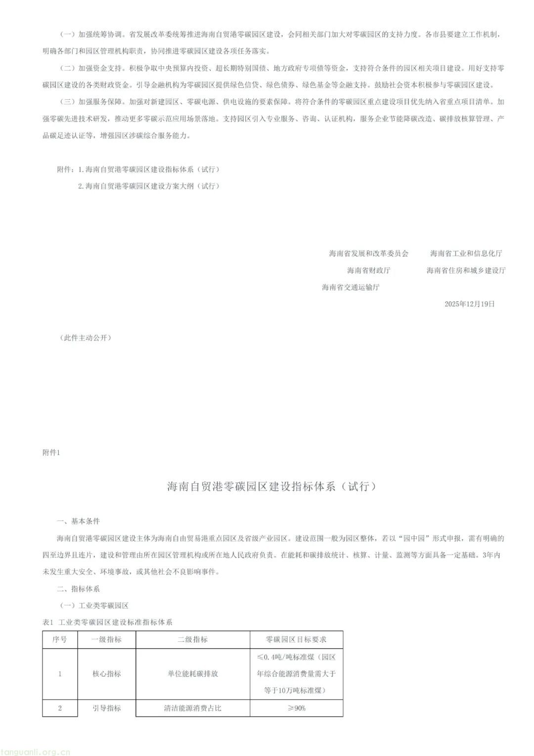 12 月 19 日,海南省发展和改革委员会等多部门联合发布《关于开展海南自贸港零碳园区建设的通知》,锚定园区能源系统零碳化转型核心目标,明确建设路径与量化指标,助力自贸港绿色低碳发展。