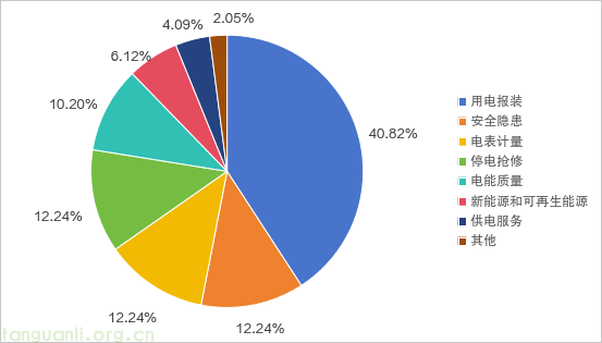 2025年11月,山西区域共接收投诉49件,环比减少3件、同比增加31件。从投诉内容看,主要集中在用电报装、安全隐患、电表计量、停电抢修和电能质量等5方面;从被投诉对象看,国网山西电力37件,山西地方电力有限公司12件;从投诉地区分布情况看,投诉数量排名前5位的分别为太原12件、吕梁10件、晋中和运城各9件、临汾7件。