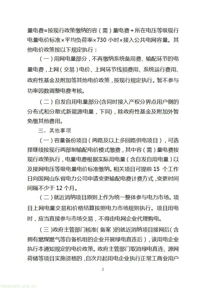2 月 28 日,山东省发改委就新能源就近消纳价格政策公开征求意见,明确项目范围、电价与市场参与规则。文件界定新能源就近消纳项目,涵盖绿电直连、源网荷储一体化、智能微电网等专线供电项目,要求与电网形成清晰物理与安全责任界面。项目按容(需)量缴纳输配电费,用网电量免缴系统备用费与输配电量电费,暂不参与功率因数考核;自发自用电量除政府性基金及附加外暂免其他费用。项目须整体参与电力市场,上网电量按市场规则交易结算,用电需直接参与市场交易,不得由电网代理购电。