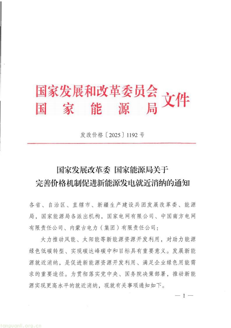 关于贯彻发改价格〔2025〕1192号文件明确新能源就近消纳价格政策有关事项的通知(征求意见稿).docx