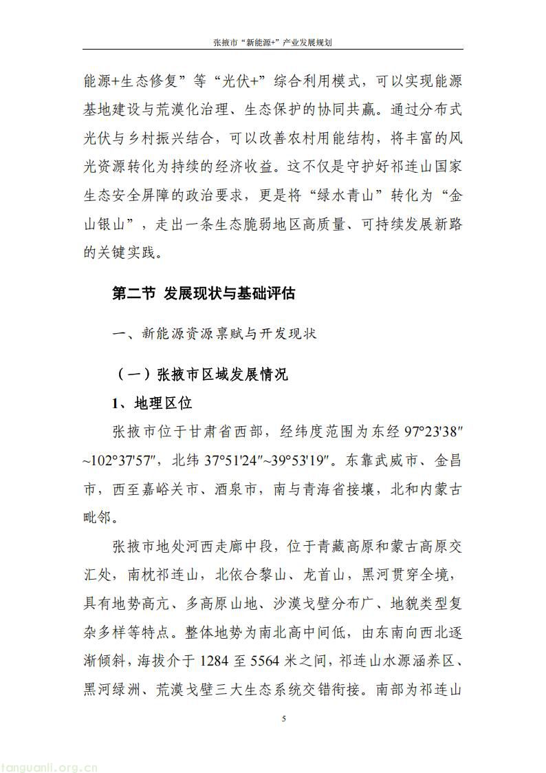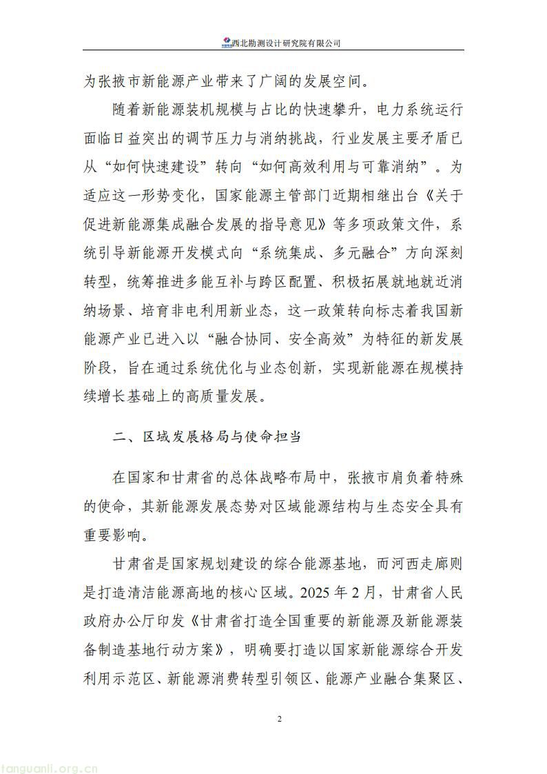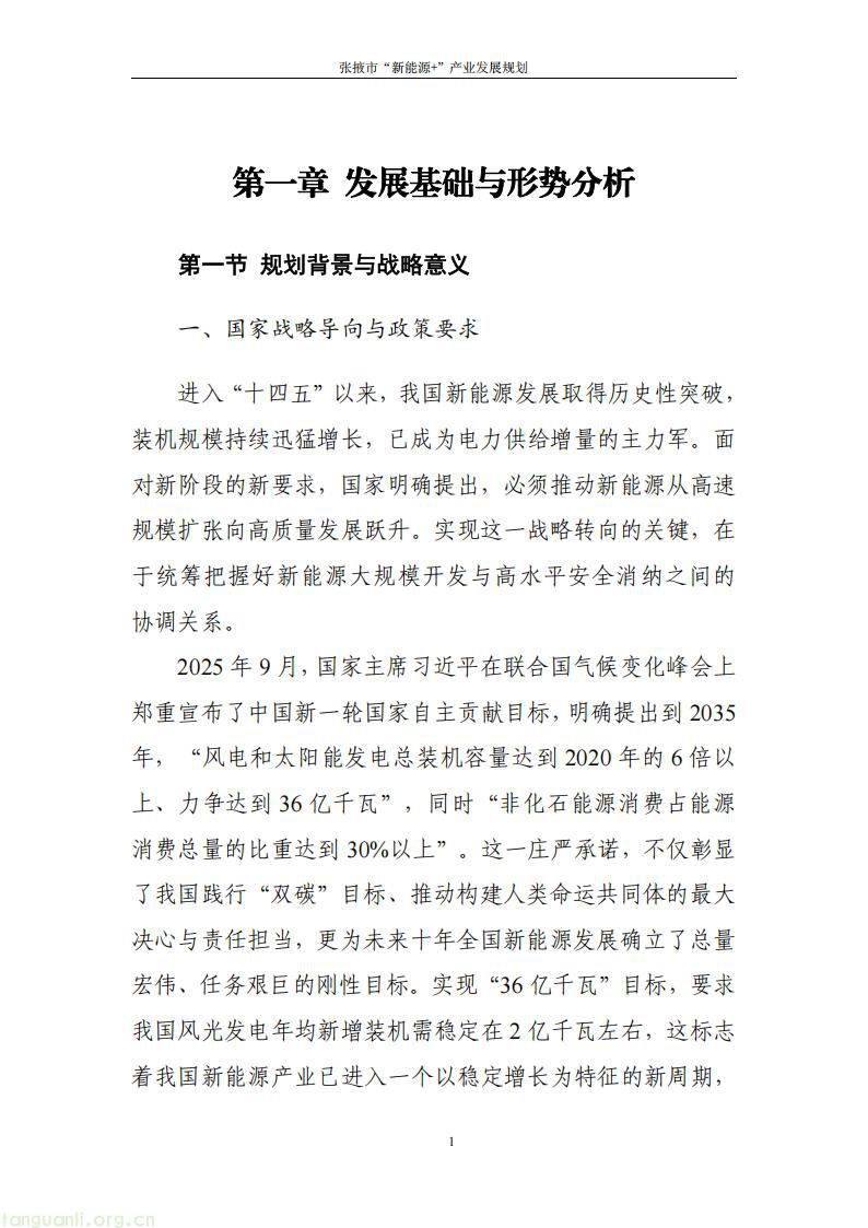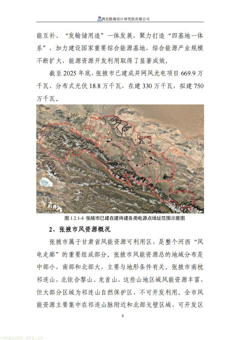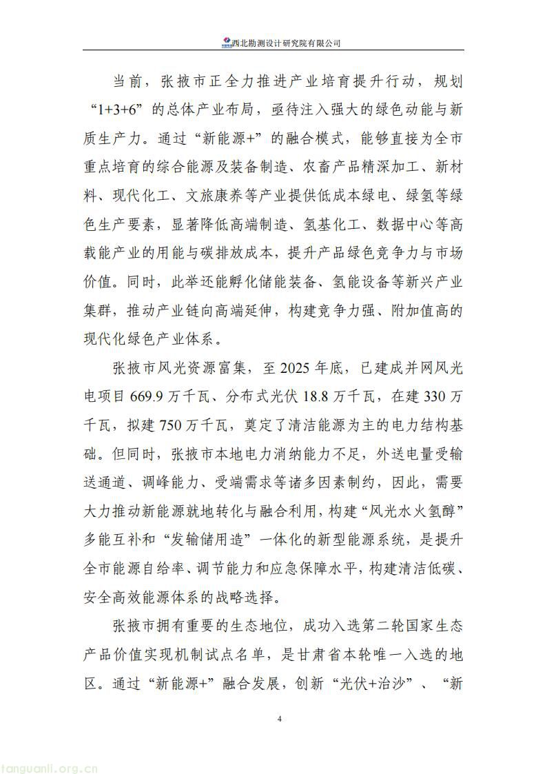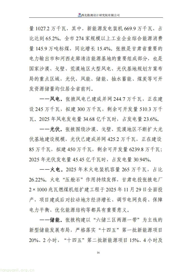 4 月 10 日,张掖市发改委就《张掖市 “新能源 +” 产业发展规划》公开征求公平竞争审查意见。规划提出,2030 年全市新能源装机目标20GW,可再生能源发电量占比达92%。风电方面,已建成并网244.7 万千瓦、在建245 万千瓦、拟建300 万千瓦,剩余可开发510.3 万千瓦;2025 年风电发电量34.68 亿千瓦时,占比23.6%。规划坚持系统优化、多能互补、高效集成,统筹风光资源与土地空间,构建集中式与分布式并举、发电与调节协同、能源开发与生态保护融合的新型能源格局,夯实绿色低碳能源基底,支撑 “新能源 +” 产业高质量发展。