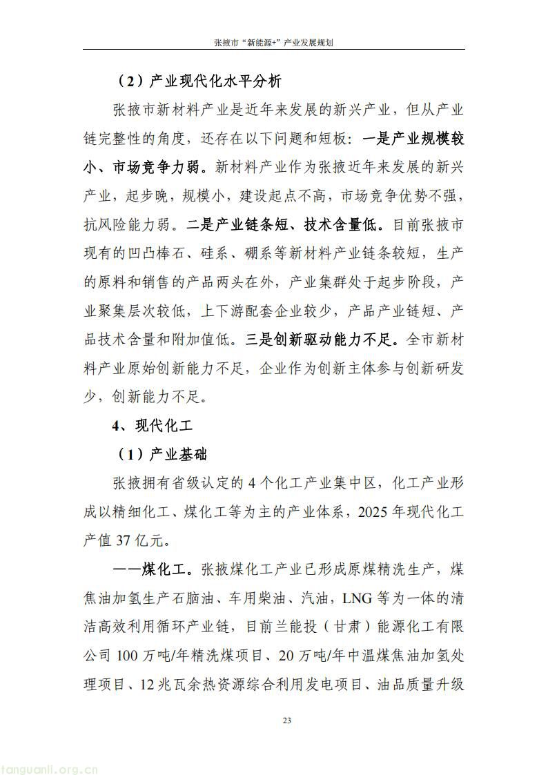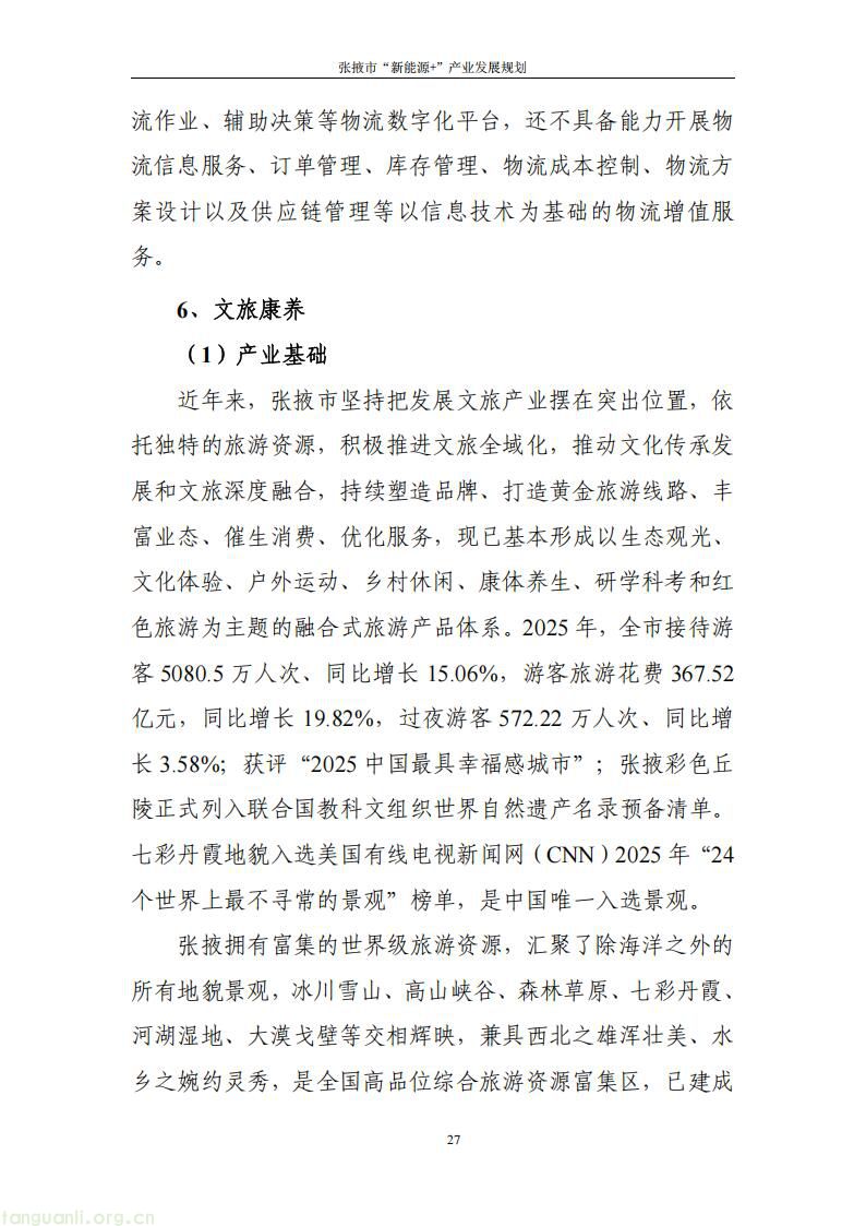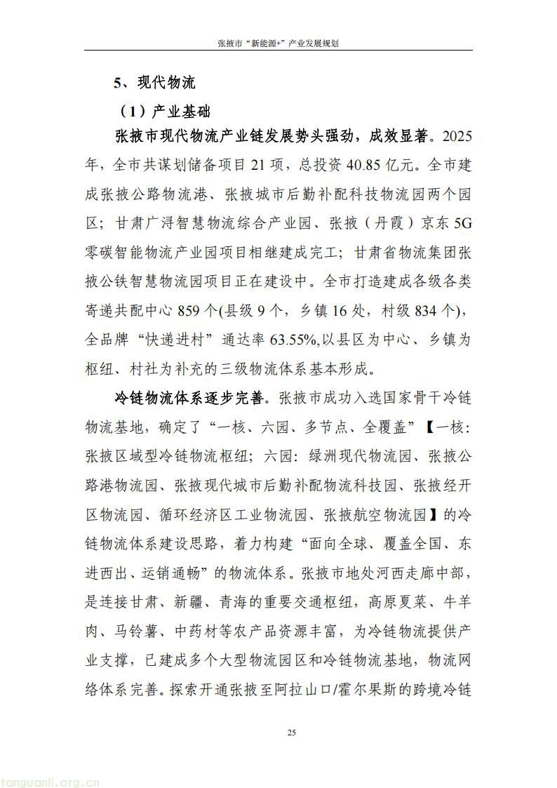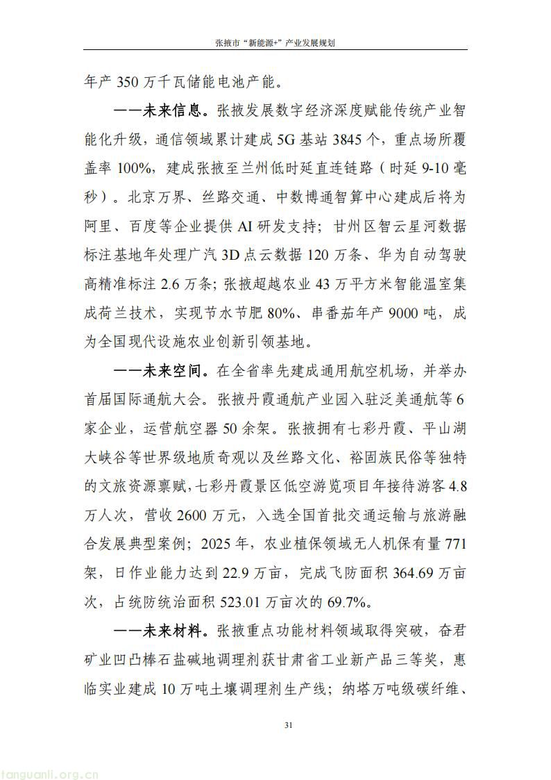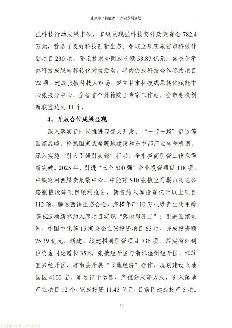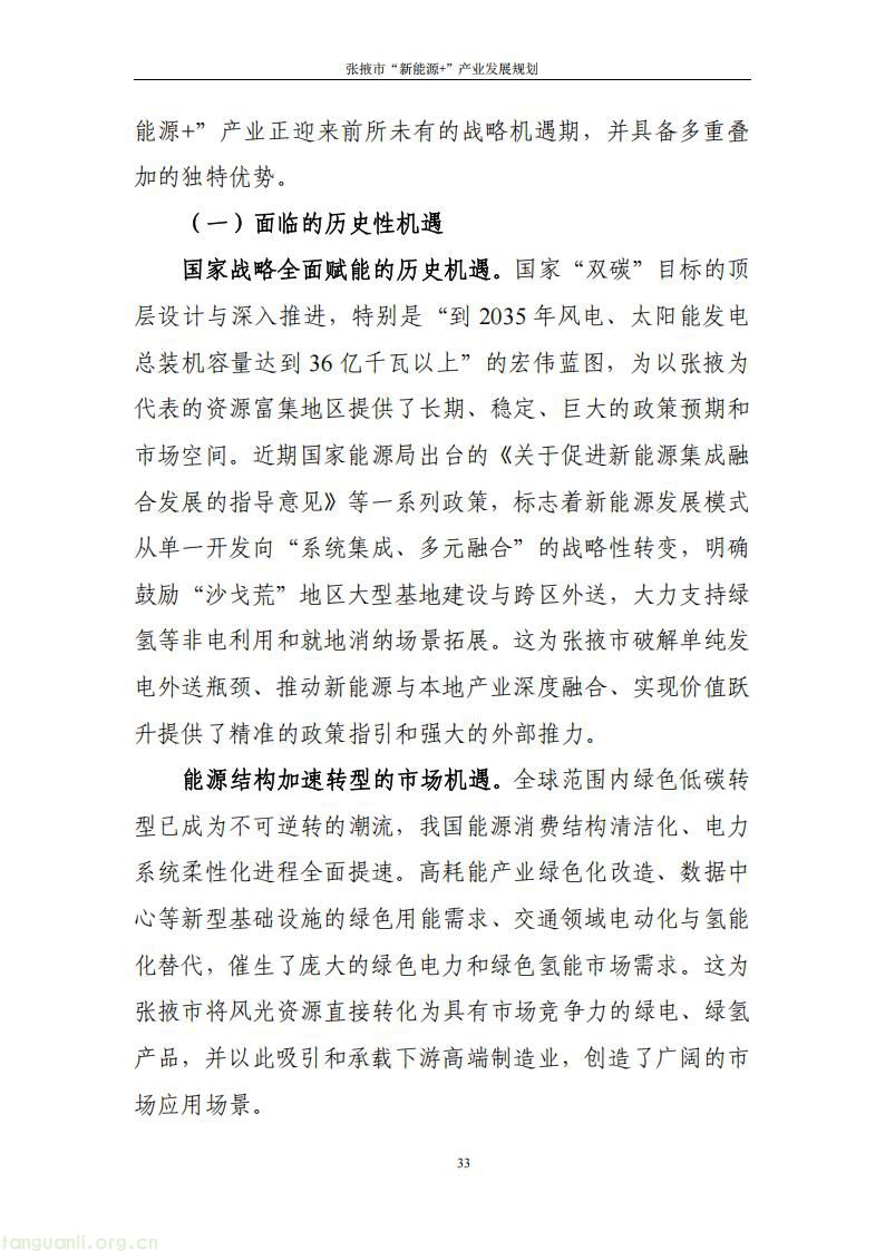 4 月 10 日,张掖市发改委就《张掖市 “新能源 +” 产业发展规划》公开征求公平竞争审查意见。规划提出,2030 年全市新能源装机目标20GW,可再生能源发电量占比达92%。风电方面,已建成并网244.7 万千瓦、在建245 万千瓦、拟建300 万千瓦,剩余可开发510.3 万千瓦;2025 年风电发电量34.68 亿千瓦时,占比23.6%。规划坚持系统优化、多能互补、高效集成,统筹风光资源与土地空间,构建集中式与分布式并举、发电与调节协同、能源开发与生态保护融合的新型能源格局,夯实绿色低碳能源基底,支撑 “新能源 +” 产业高质量发展。