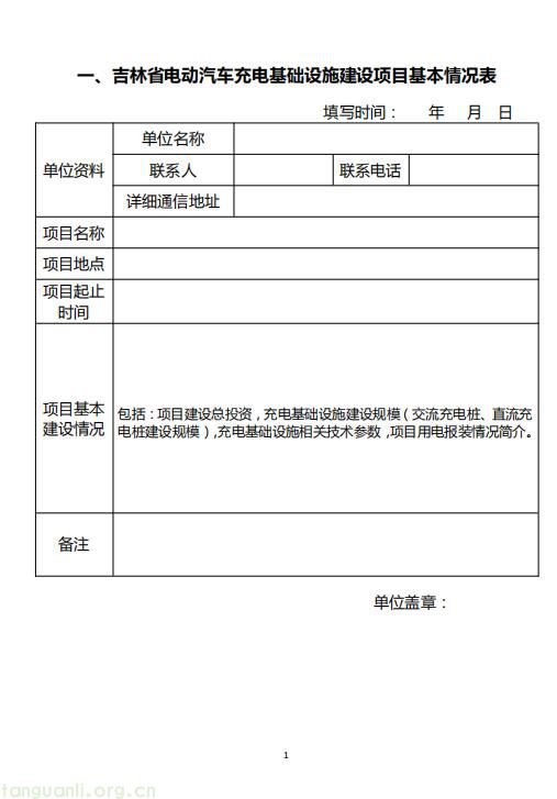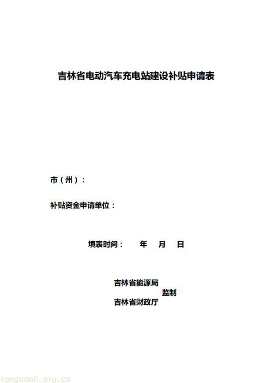 附件:1.吉林省电动汽车充电站建设补贴申请表