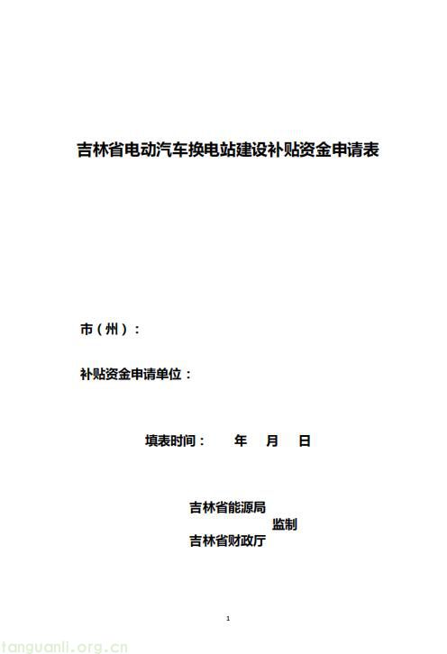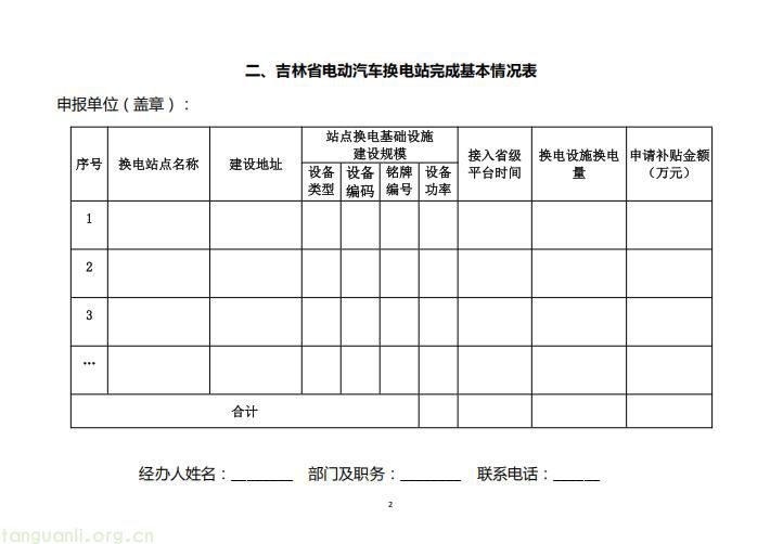 2.吉林省电动汽车换电站建设补贴申请表