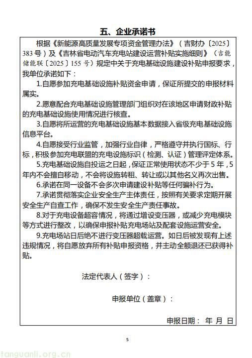 (一)符合《吉林省新能源高质量发展专项资金实施方案》(吉能储能联〔2025〕63号)《吉林省电动汽车充电站建设运营补贴实施细则(修订版)》(吉能储能联〔2025〕155号)《吉林省电动汽车换电站建设运营补贴实施细则(暂行)》(吉能储能联〔2025〕156号)规定条件的专用、公用充(换)电设施,自用充电设施不在申报范围内。