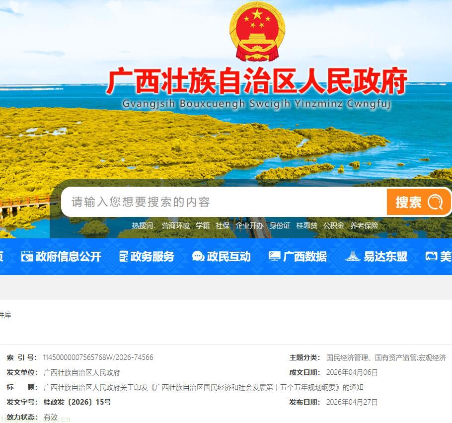 近日,广西壮族自治区人民政府印发《广西壮族自治区国民经济和社会发展第十五个五年规划纲要》,明确以构建清洁低碳、安全高效的新型能源体系为目标,聚焦能源产业升级、体制改革、项目建设三大重点,推动能源领域高质量发展,为全区经济社会发展提供坚实能源保障。